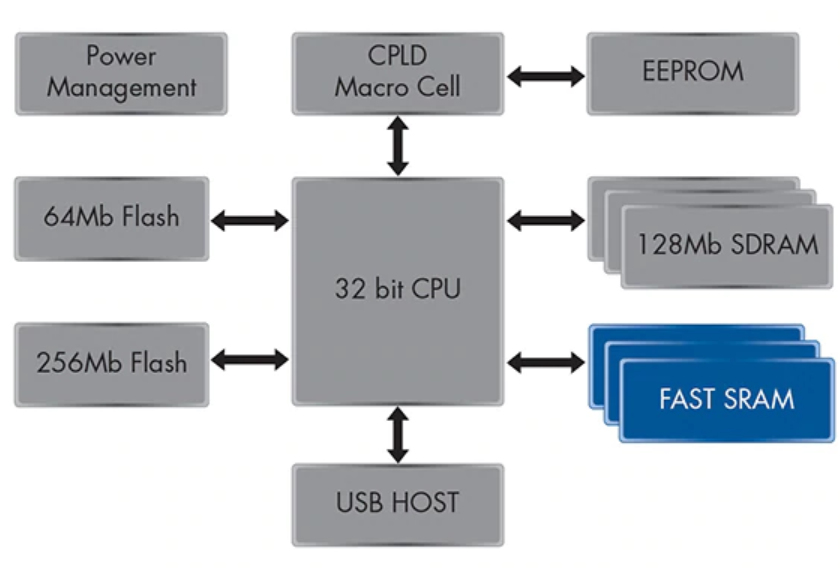 多功能打印機(MFP)是MoBL®SRAM器件的主要應用領域。多種數據永久或臨時存儲在MFP內存中。硬盤驅動器(HDD)或閃存驅動器存儲各種類型的用戶信息,而用戶工具設置,網絡設置和配置數據則存儲在專用的MoBL®SRAM中。SRAM還用于作業狀態和字體表。數據對于設備的運行至關重要,并通過電池的電源循環進行保護。因此,MFP設計需要具有高可靠性和低錯誤率的SRAM