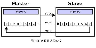 這是通過移位寄存器來實現(xiàn)的。如圖2所示,主機和從機各有一個移位寄存器,且二者連接成環(huán)。隨著時鐘脈沖,數(shù)據(jù)按照從高位到低位的方式依次移出主機寄存器和從機寄存器,并且依次移入從機寄存器和主機寄存器。當寄存器中的內(nèi)容全部移出時,相當于完成了兩個寄存器內(nèi)容的交換。