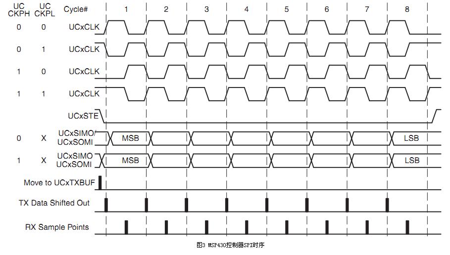 在SPI操作中,最重要的兩項設置就是時鐘極性(CPOL或UCCKPL)和時鐘相位(CPHA或UCCKPH)。時鐘極性設置時鐘空閑時的電平,時鐘相位設置讀取數(shù)據(jù)和發(fā)送數(shù)據(jù)的時鐘沿。
