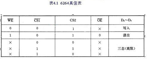 (1) 8K×8bit的CMOSRAM芯片 ① 引線功能。6264(6164)有28條引出線,它們包括:A0~A12為13條地址信號線。D0~D7為8條雙向數(shù)據(jù)線。CS2為兩條選片信號的引線。